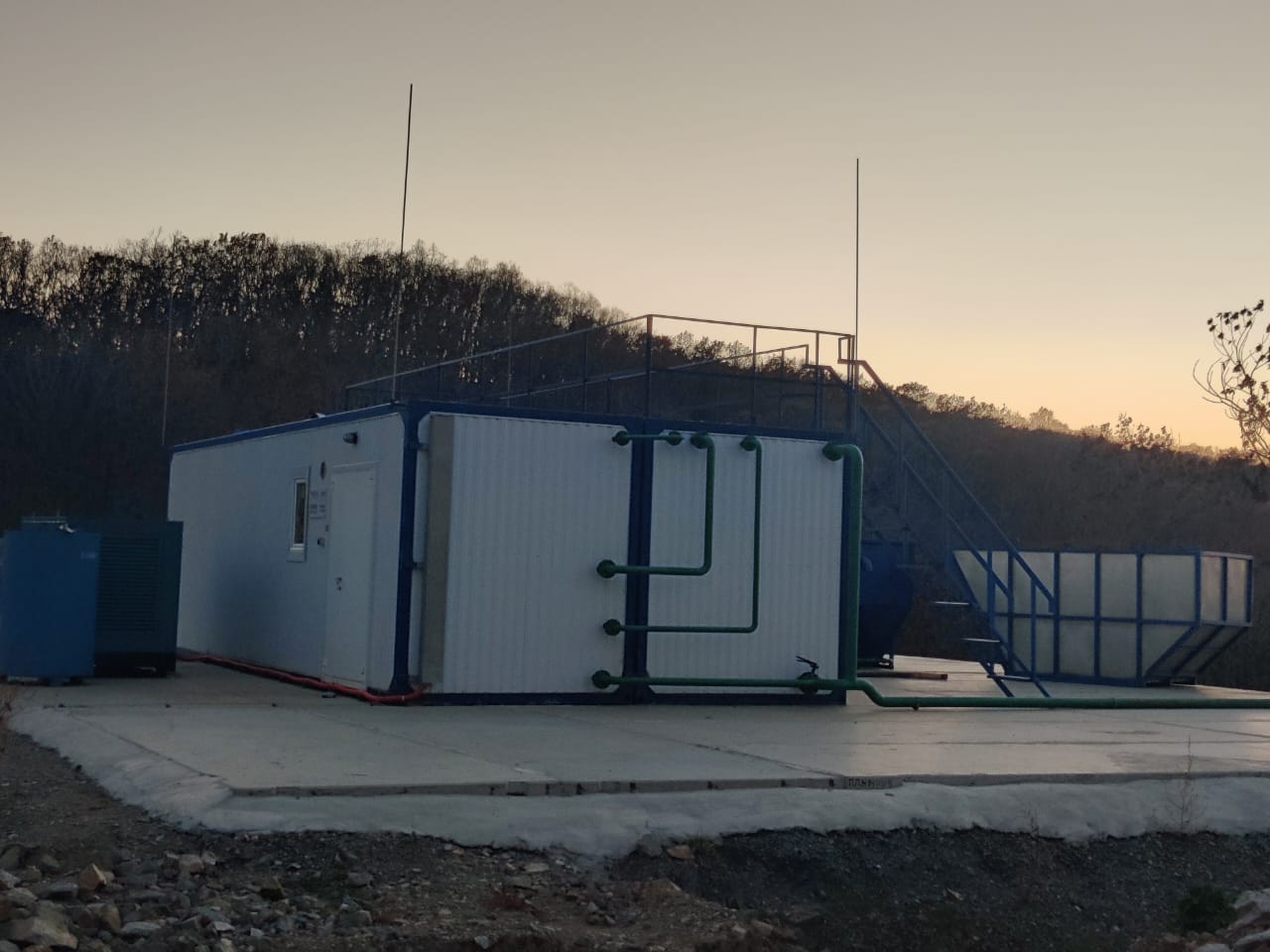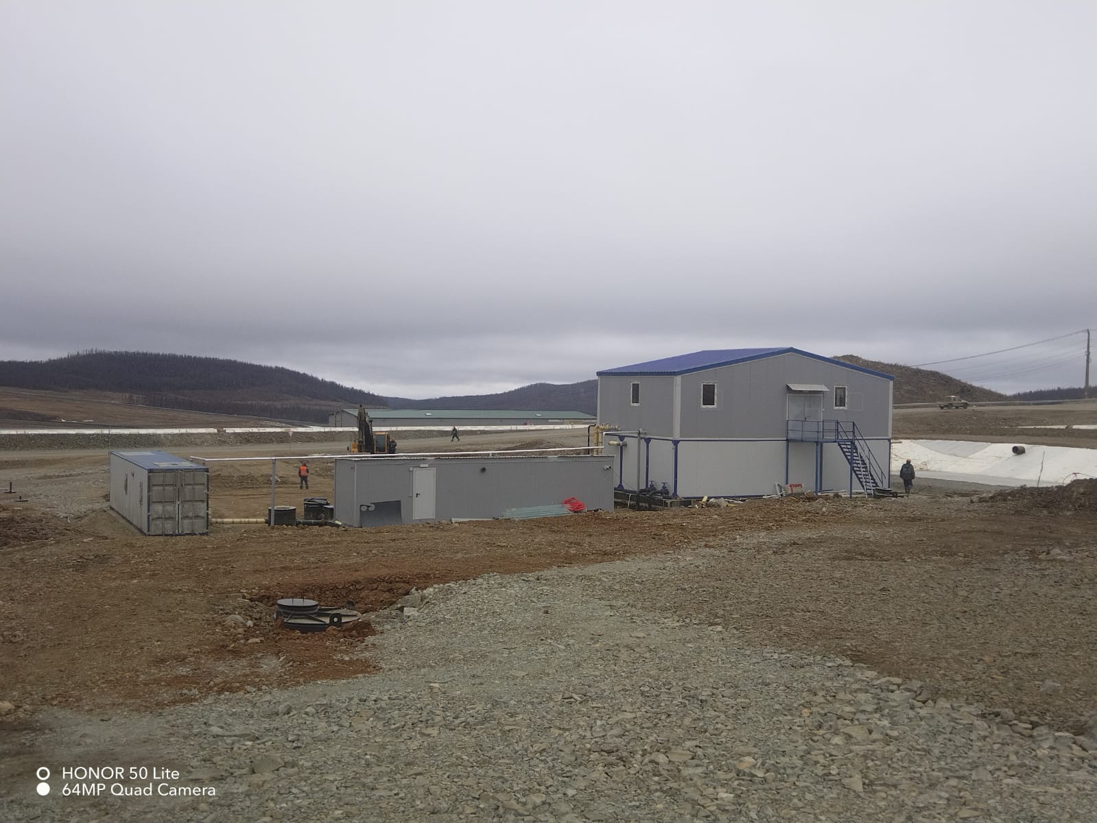 Строительство горно-обогатительного комбината для добычи золота в Усть-Камчатском районе. Очистные сооружения хозяйственно-бытовых сточных вод "ТВЕРЬ-50БМ" производительностью 50 м3/сутки. Суровые климатические условия, сейсмика 9 баллов.