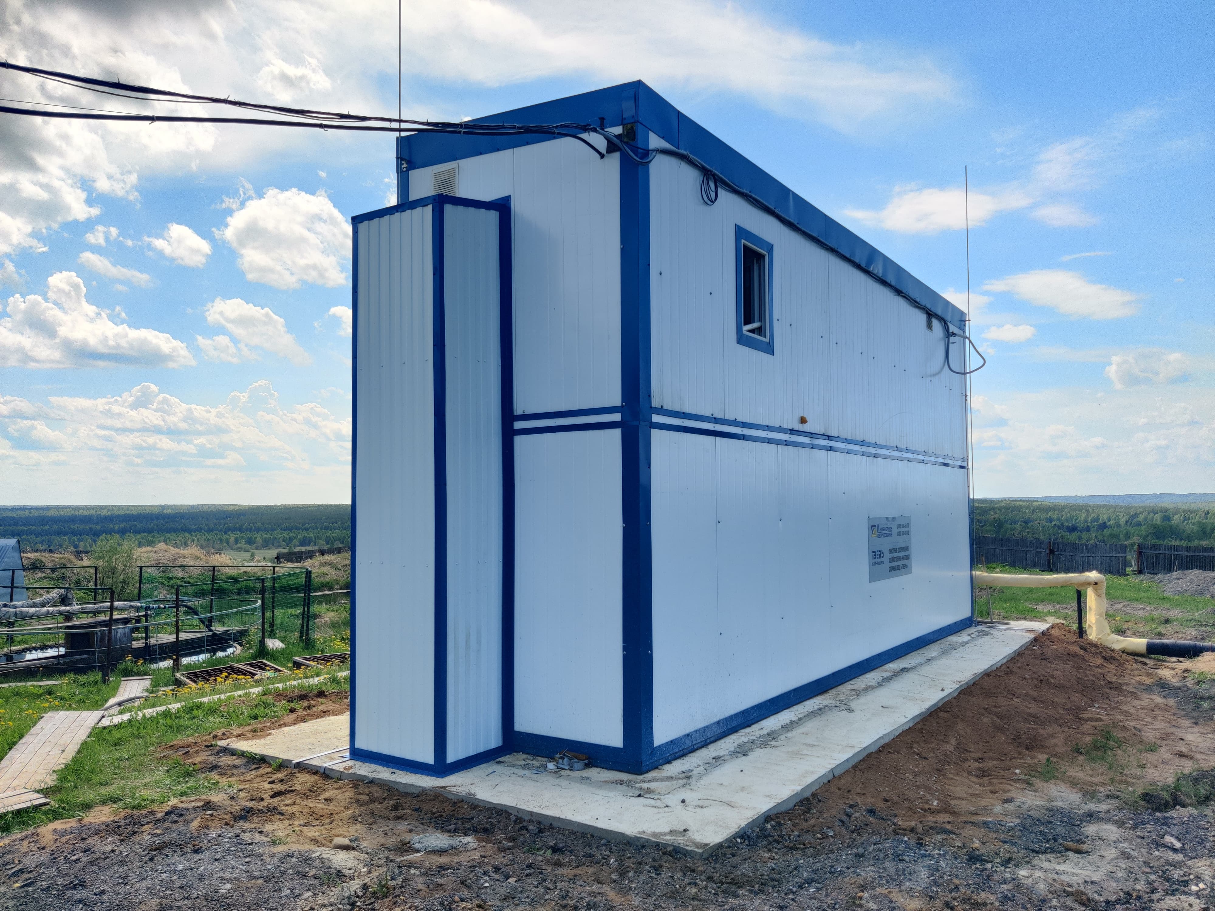 Очистные сооружения хозяйственно-бытовых сточных вод "ТВЕРЬ-30БМ" производительностью 30 м3/сутки + канализационная насосная станция. Очистное сооружение поставлялось для развития инфраструктуры в Сысольском районе Республики Коми. Изготовление оборудования, монтаж, пуско-наладка.