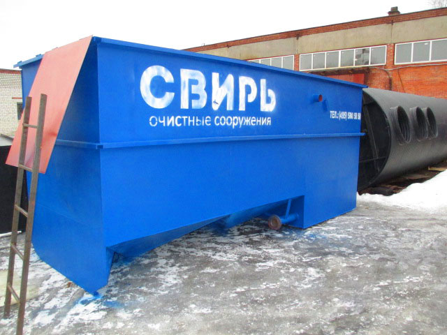 Установка «СВИРЬ-2,5У» с производительностью 2,5 л/сек. предназначена для очистки поверхностных сточных вод (дождевых и талых) на территориях автозаправочных станций, автостоянок, складов горюче-смазочных материалов, нефтебаз, промышленных зон и жилых районов с примерной площадью водосбора до 0,125 га.